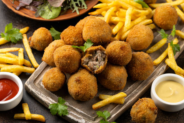 ของกินเล่นยอดนิยม คล้ายโครเก็ต กลม ๆ กรอบนอก ข้างในเป็นไส้เนื้อบดหรือ ragout กินกับมัสตาร์ด