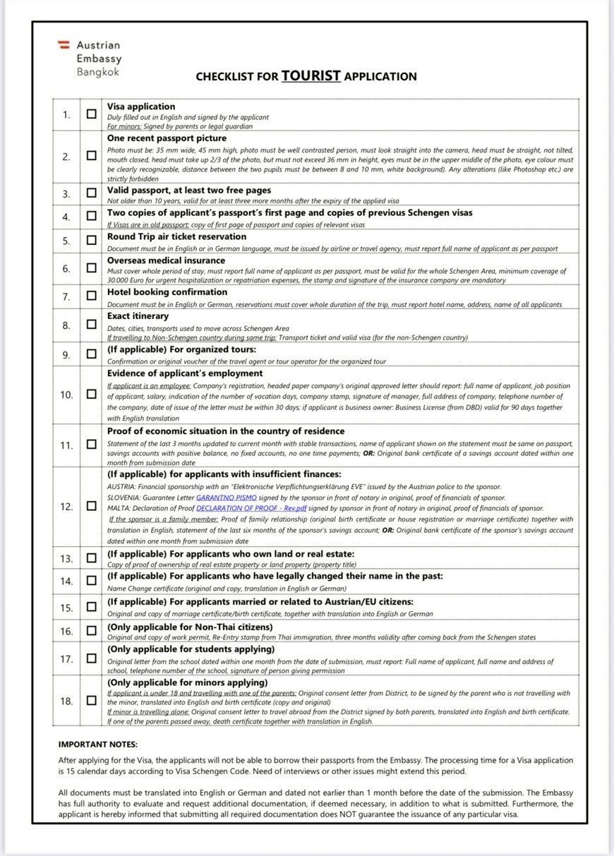 หริ่นแนะนำ “รายการตรวจสอบสำหรับการยื่นขอวีซ่าท่องเที่ยวเชงเก้น ประเทศออสเตรีย” เหมาะสำหรับผู้ที่กำลังวางแผนเดินทางไปเที่ยวออสเตรีย ไม่ว่าจะเที่ยวเองหรือเดินทางกับรถส่วนตัวของ See You Again หริ่นรวบรวมข้อมูลล่าสุดจากสถานทูตออสเตรียมาให้ครบ พร้อมรายละเอียดที่หลายคนมักพลาด เช่น เอกสารแปลภาษาอังกฤษหรือเยอรมัน, ประกันสุขภาพที่ต้องครอบคลุม 30,000 ยูโร, และระยะเวลาที่เอกสารยังใช้ได้อยู่ เตรียมเอกสารครบตั้งแต่ต้น จะช่วยให้การขอวีซ่าผ่านได้ราบรื่นขึ้นมากค่ะ